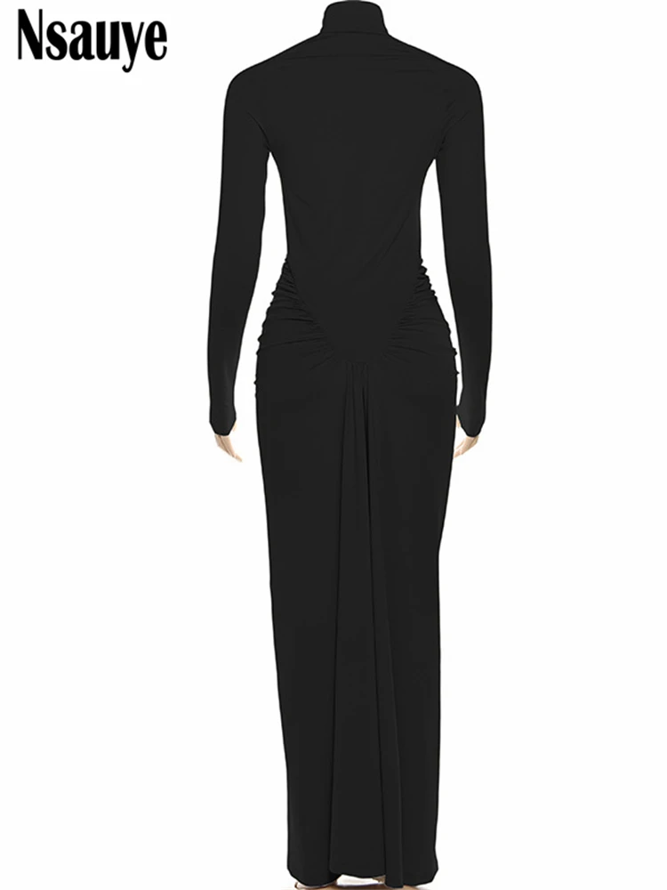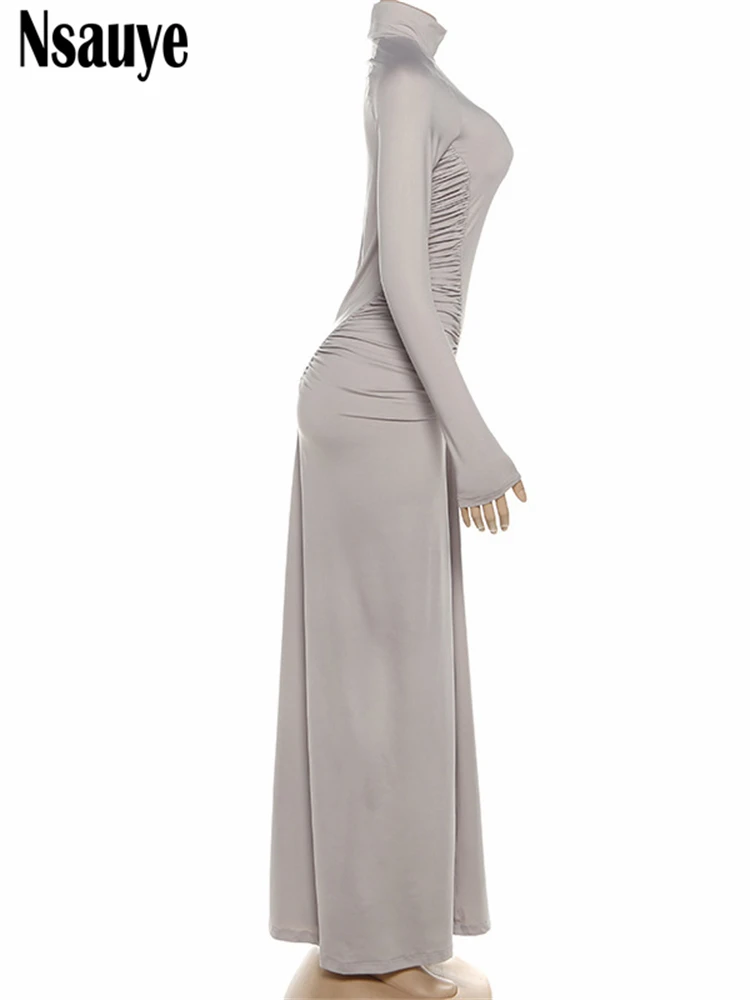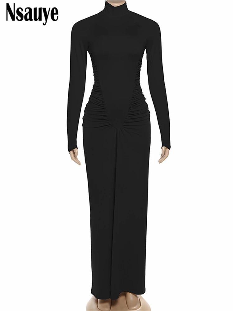 Dress for Women Turtleneck Fashion Sexy Night Club Party Holiday Maxi Evening Bodycon Ruched Dress 2025 Winter Autumn