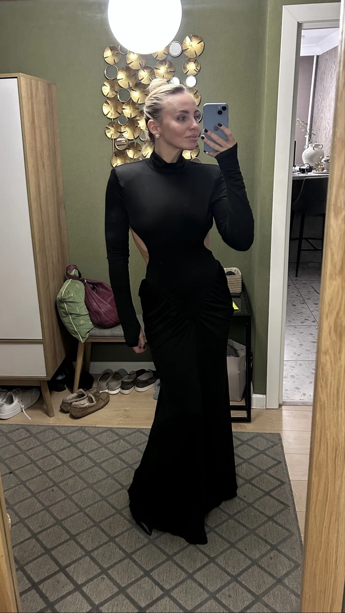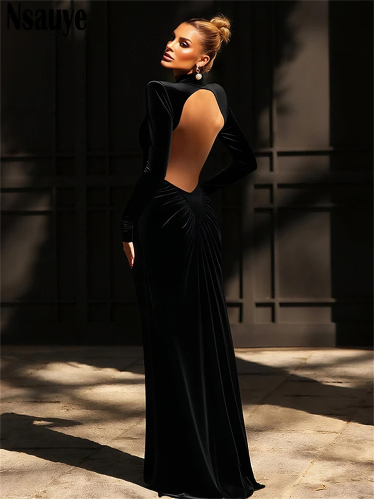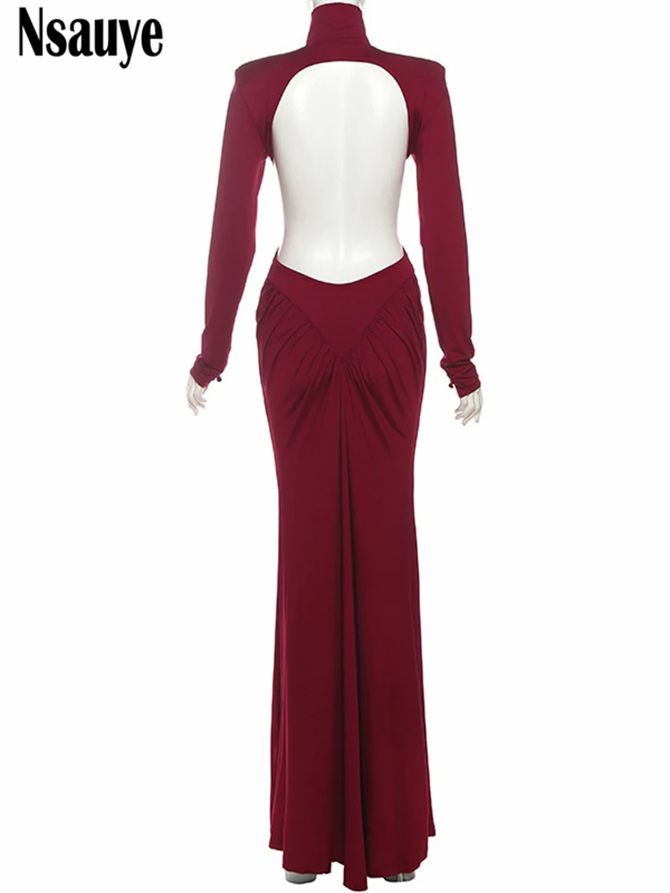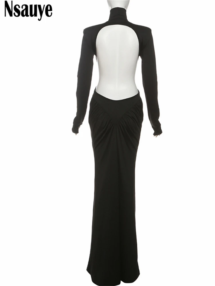 Fashion Elegant Long Sleeve Pullover Sexy Long Sleeve Club Evening Party Maxi Dress Women Turtleneck 2025 Cut Out Dress